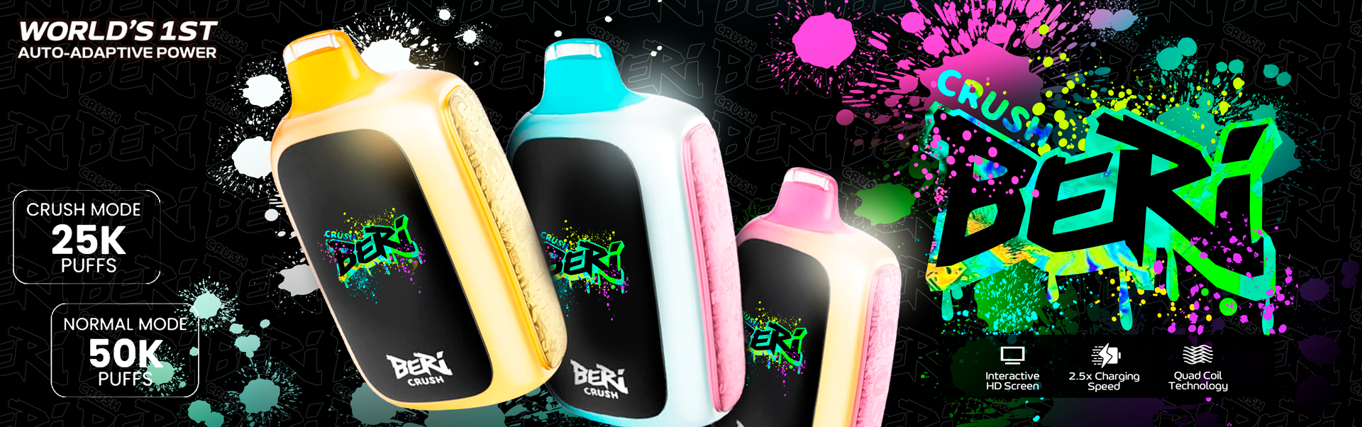 Beri Crush is a disposable vaping device. A 6-mode auto-adaptive adjustment function and a 40W power mode make this the world’s first device of its kind.